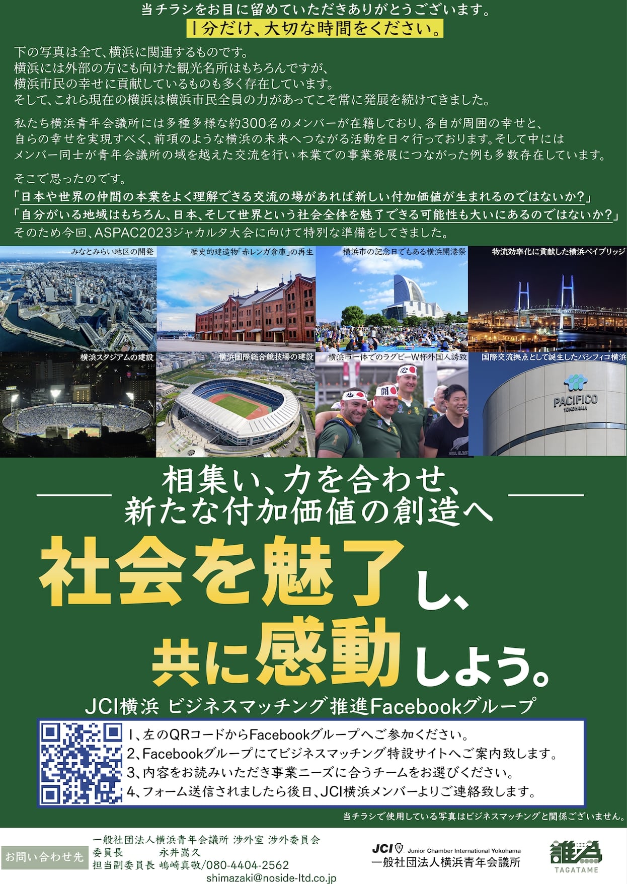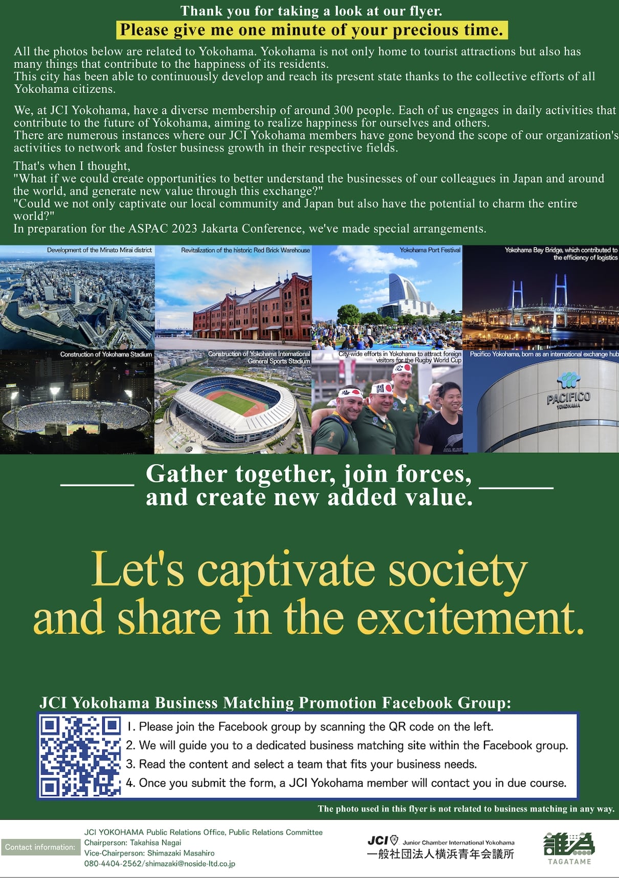 Please make sure to register for the JCI Yokohama business matching Facebook page.