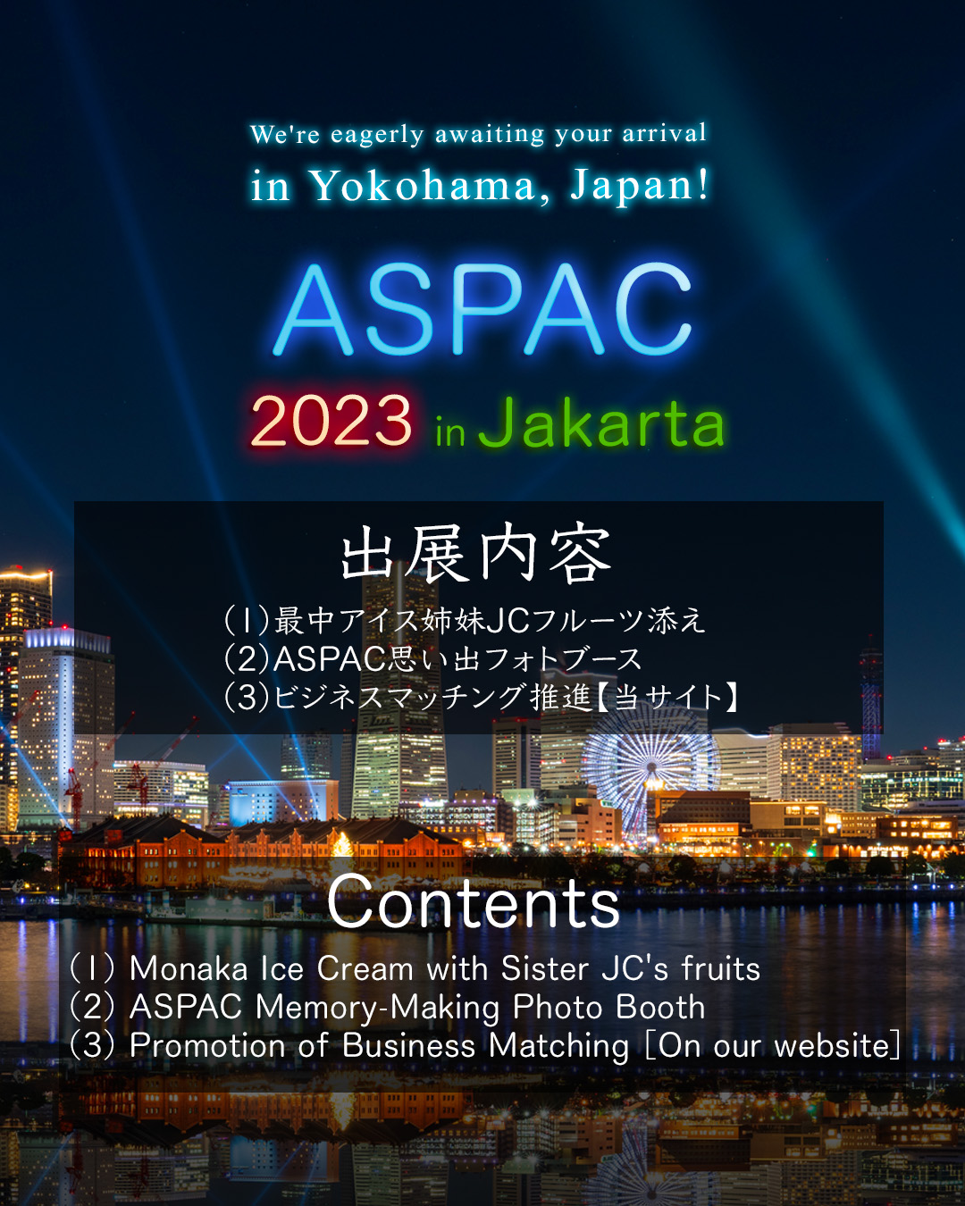 Let’s take a photo with the Yokohama cityscape featuring the “ASPAC2023 in Jakarta” logo in the background!